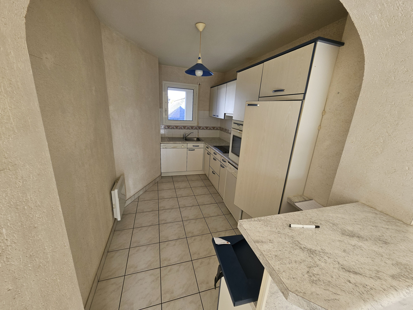 A proximité immédiate du centre ville et du port de plaisance (plage à 3min à pied, bois à 2 min) bel appartement en duplex de 56 m² situé au 1er étage dans une coproprieté recente de 1995; appartement comprenant au 1er: cuisine a/e ouverte sur salon séjour de 27 m², wc, grand balcon de 10 m² (2m de profondeur par 5 de large); au 2nd: 1 belle chambre avec placard, une autre petite servant de bureau ou de chambre d'appoint avec placard, sdb wc; débarras exterieur de 3 m² (possibilité d'un garage en sus du prix), une place de parking privative (ouvertures doubles vitrages, chauffage électrique individuel), charges de coproprieté de 250e/trimestre.