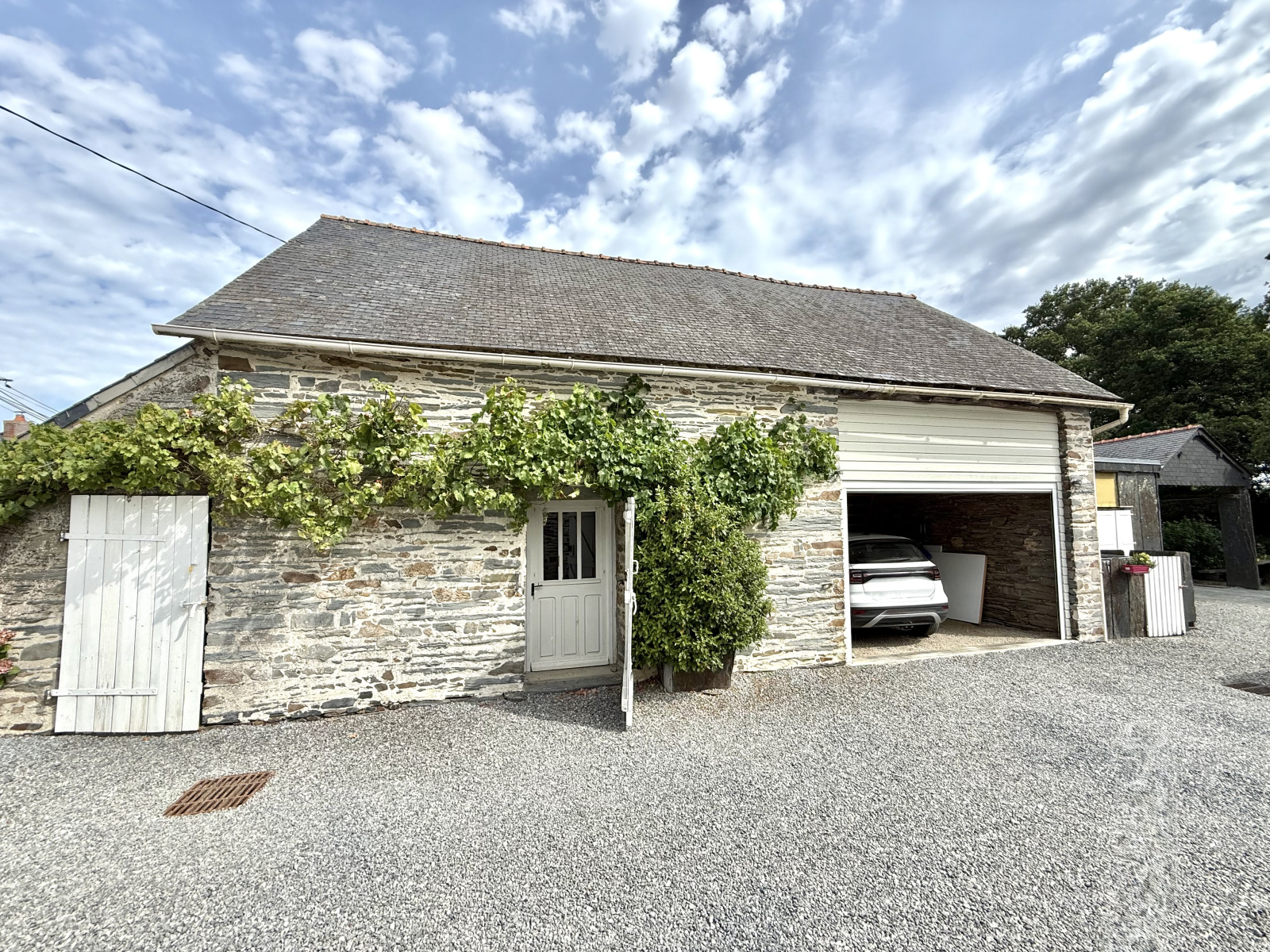 La dépendance propose une salle de jeux isolée, un garage de 20m² et son spacieux grenier d'environ 50m², un local à vélos, des anciennes soues à cochons ainsi qu'un préau.