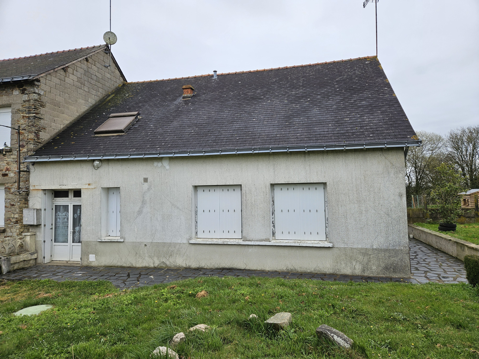 Proche Chateaubriant ; maison à rénover comprenant au rdc: cuisine a/e de 17 m², salon séjour avec cheminée de 25m², 3 chambres dont 2 traversantes de 10 à 13m², sdb, wc; au 1er: 1 chambre de 15 m² avec sde, très grand grenier de 45 m²; très belle dépendance en pierre de 65 m² avec garage; terrrain de 1462m² (ouvertures pvc double vitrage, fosse aux normes ...).