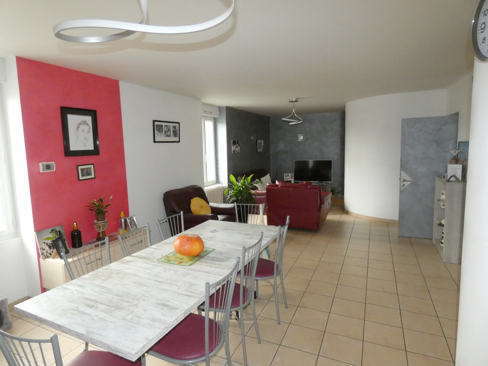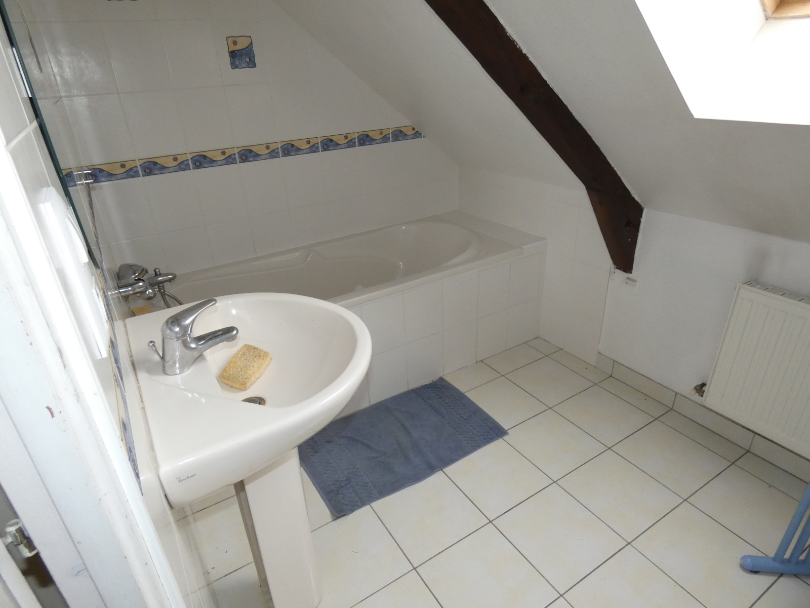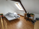 - 1er étage: - belle pièce de vie avec cuisine A/E 45 m², 2 chambres de 10 et 17 m², lingerie, salle d'eau, toilette.